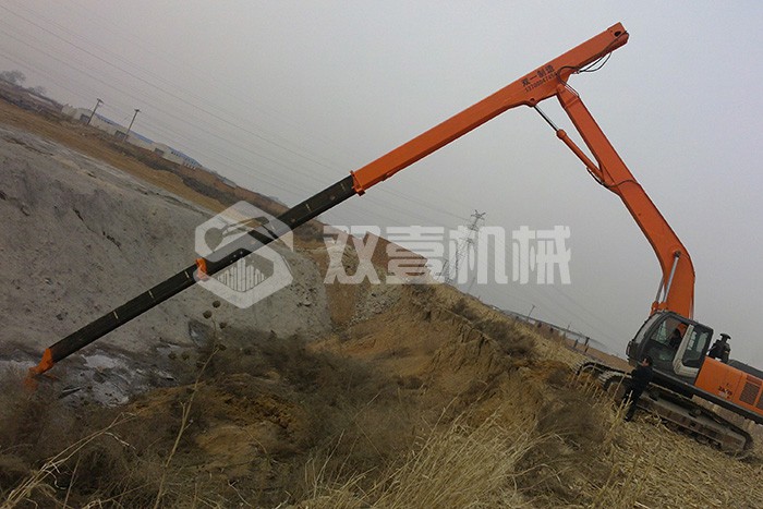 雙壹公司備有多臺(tái)長臂挖掘機(jī),15-200米各種長度,一站式解決您的深坑挖掘難題。