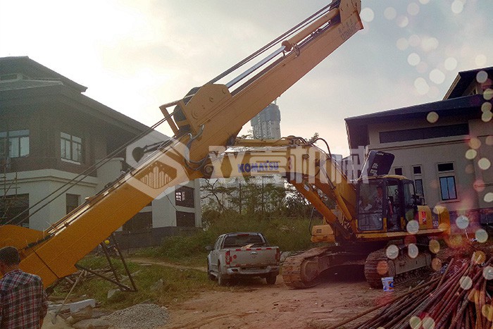 超長四節(jié)臂:總長度可達48米,臂內(nèi)可再伸出3節(jié),施工深度42.5米,配帶貝殼斗1.8立方或挖掘斗1.0立方。