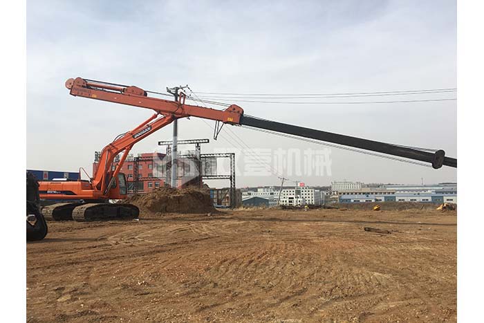 超長(zhǎng)四節(jié)臂:總長(zhǎng)度可達(dá)48米,臂內(nèi)可再伸出3節(jié),施工深度42.5米,配帶貝殼斗1.8立方或挖掘斗1.0立方。