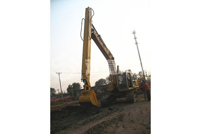 兩節(jié)伸縮臂是雙壹機械2005年自主研發(fā)的突破性產(chǎn)品,被多家同行模仿制造,從未被超越;臂長度19米,采用高噸位的三機聯(lián)動折彎設備折成U型,雙U型對接的焊接方式。