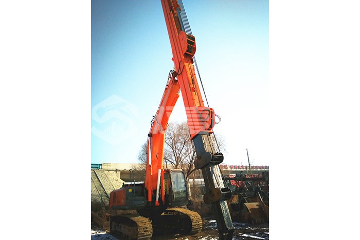 超長四節(jié)臂:總長度可達48米,臂內(nèi)可再伸出3節(jié),施工深度42.5米,配帶貝殼斗1.8立方或挖掘斗1.0立方。