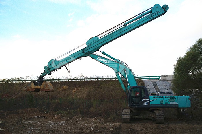 超長四節(jié)臂:總長度可達48米,臂內(nèi)可再伸出3節(jié),施工深度42.5米,配帶貝殼斗1.8立方或挖掘斗1.0立方。